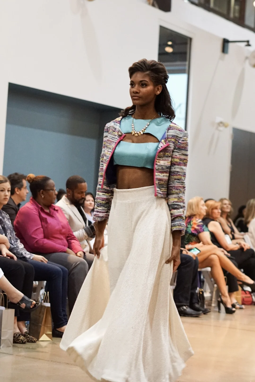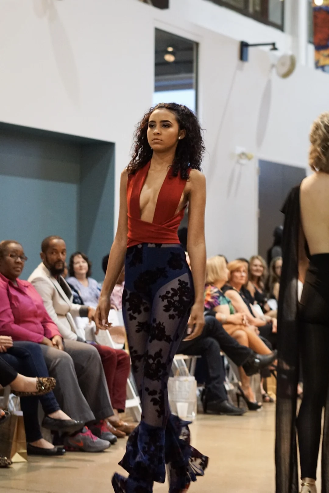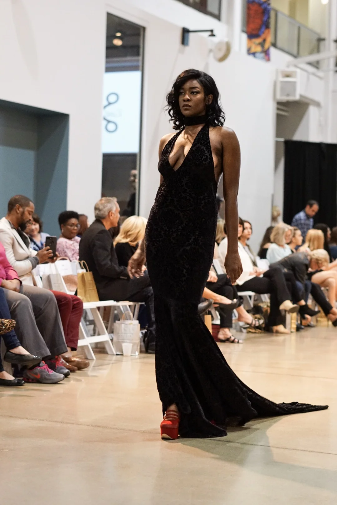 Another Romancing the Runway highlight was a stunning collection from local formal designer, Shaunice Williams. The crowd grew markedly silent as the first model appeared onstage, and continued to "ooh!" and "ahh!" with each new look. What was trending? Her collection featured deep jewel tones paired alongside sparking metallics and sheer sexy cutouts revealing just enough skin.