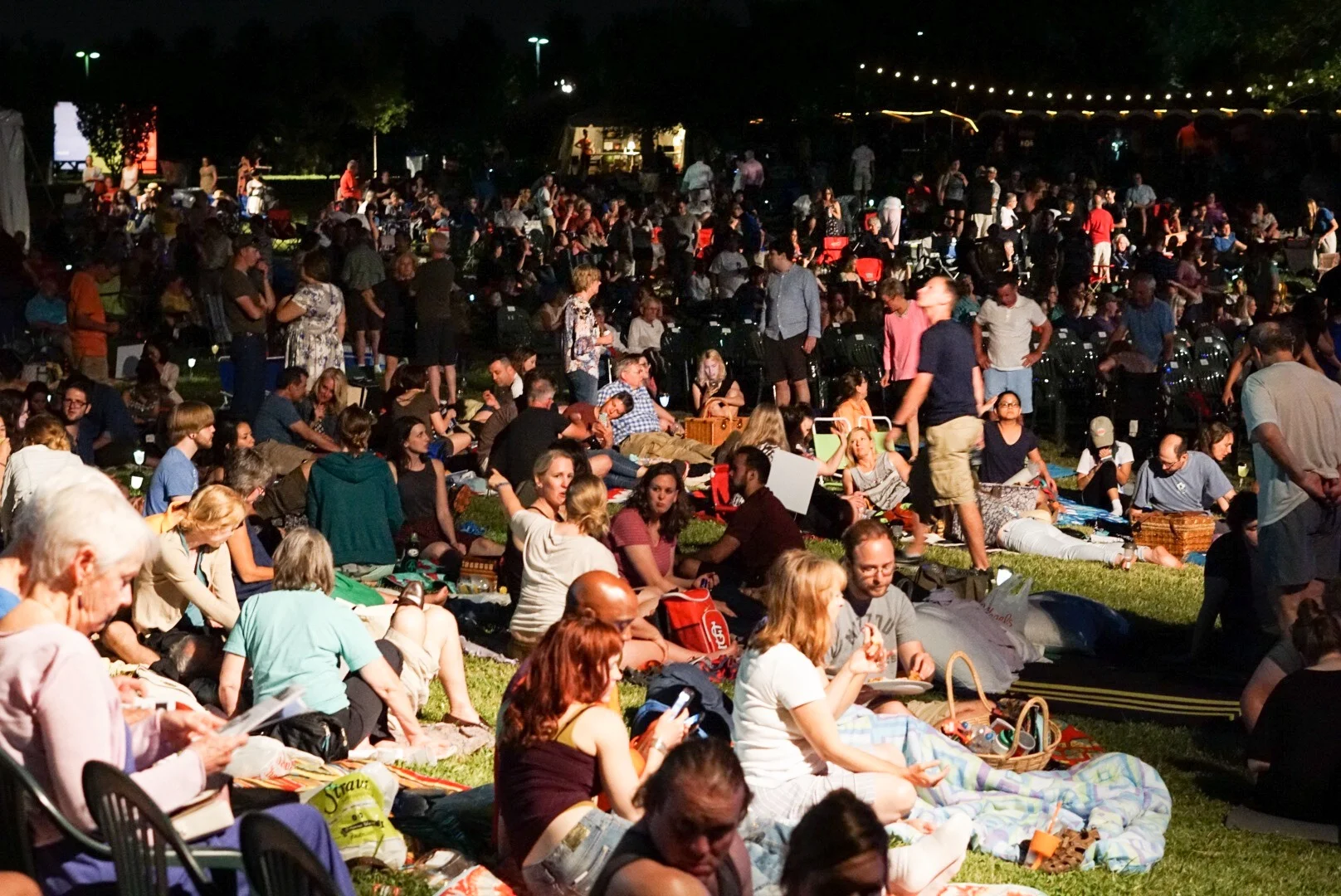 Shakespeare Festival Saint Louis has a "bring your own" policy when it comes to food, beverages, and seating. Patrons wishing to watch from blankets are able to secure the closest seats, while lawn chairs and the like are directed to a separate section immediately behind them.
